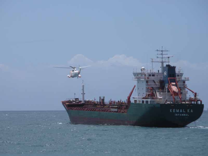 Cuando tomamos los datos del Perfilador de Sonido nos sorprende la subida de más de un grado que tienen las aguas en profundidad (16.9º C), mientras que en superficie permanecen, más o menos, constantes (20.3º C). Por si a alguno de nuestros seguidores le interesa para situarnos en el día de hoy, os doy las coordenadas del punto de muestreo: 36º 46.64´N/6º 40.05´W. La profundidad es 30.15 metros. Hemos corrido las líneas sin grandes dificultades, a pesar del oleaje que nos cogía de través y el barco se balanceaba un poco. Afortunadamente, siendo un buque de moderna construcción, se encuentra preparado para estas circunstancias y el balanceo no ha producido males mayores. Sin embargo, y por desgracia, tuvimos ocasión de presenciar una evacuación con helicóptero, de tres marineros de un buque con bandera turca que habían resultado heridos en un accidente en la mar. Cuando redacto estas líneas, con las noticias en la radio puestas de fondo, escucho decir que uno de los evacuados ha fallecido y los otros dos han quedado hospitalizados. Esto nos da la medida de los riesgos en la mar, a pesar de que las cosas desde tierra parecen mucho más bucólicas y que nuestras expediciones científicas puedan verse, más o menos, como unos cruceros de placer para privilegiados científicos. El trabajo a bordo es arriesgado y tiene sus peligros. El continuo movimiento de la superficie sobre la que trabajamos, la cubierta o el laboratorio, está sometida a los imprevisibles golpes de mar que le propinan las olas, lo que hace que algunas actividades se tornen ciertamente arriesgadas. Como os digo, ver estas escenas en la mar te pone los pelos de punta.