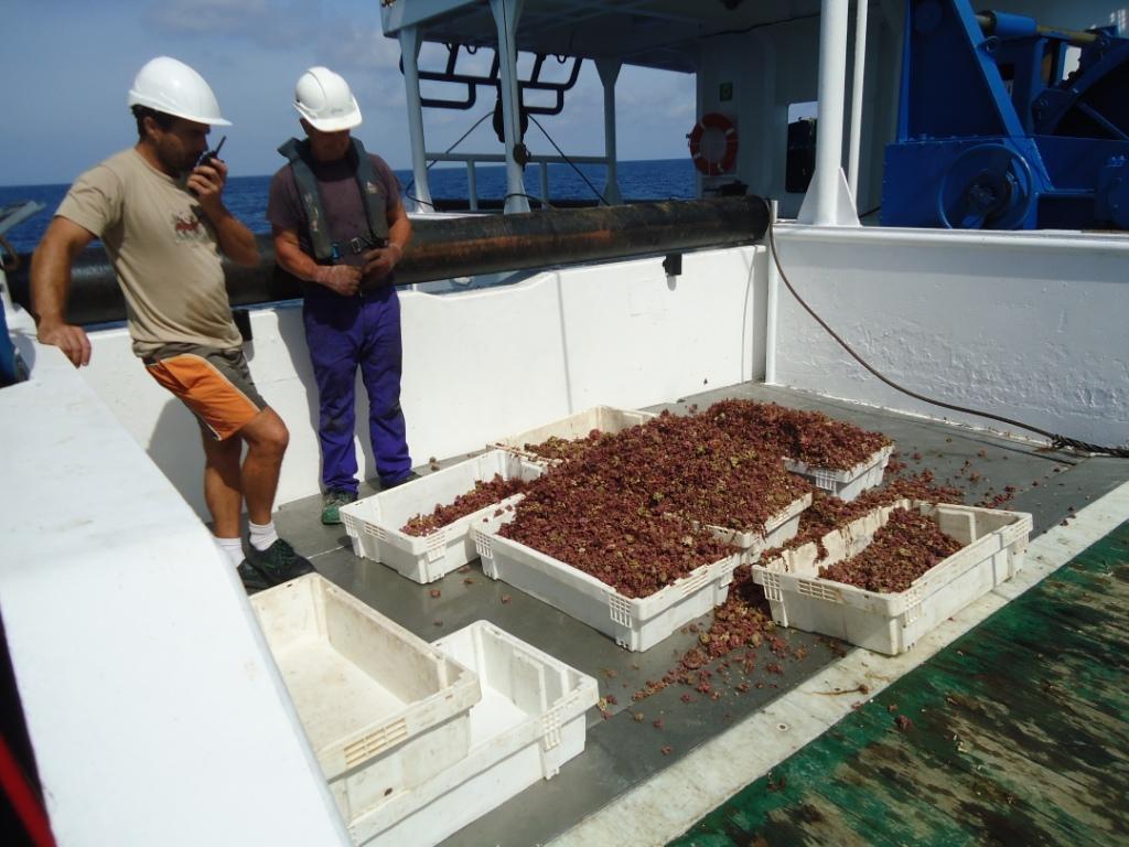 Al finalizar esta primera batida, se pesan los restos (mayoritariamente arena y rodolitos muertos), las algas y los rodolitos vivos. Finalmente se termina por separar los animales por especies, se pesan y se miden. Todo este proceso suele durar unas dos o tres horas de intenso trabajo, donde cada uno de los tripulantes de la campaña sabe muy bien el papel que debe llevar a cabo para acelerar el proceso al máximo.