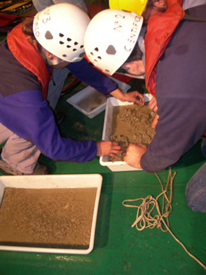 Muestra de la draga de arrastre repleta de barro / Drag sample full of mud ©ICM-CSIC