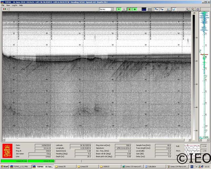 Captura de pantalla de la sonda paramétrica (TOPAS) de un perfil levantado en las cercanías a la localidad de Rota ©IEO