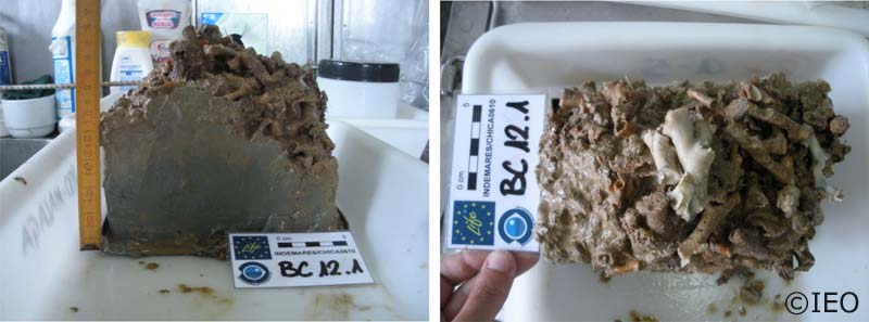 Hemos basado la prospección de hoy en el empleo de box corer, beam trawl y draga de arrastre bentónica. Lo más extraño es la composición tan distinta del box corer de hoy con el que hemos extraído hace un par de días en un lugar muy próximo (BC 7.1 del Martes 22 de junio). Intentar vosotros establecer una comparación entre ambas muestras y mirar si hay similitudes o diferencias. Tendréis la oportunidad de ver, en las mismas circunstancias que nosotros, el resultado del muestreo. Vemos en este caso, en la base de la muestra, un fango grisáceo muy plástico sobre el que se ha depositado un sedimento arenoso fino cubierto de abundantes restos de corales muertos. Los ejemplares de corales son de tamaños grandes, lo que indica que en el pasado ha existido un arrecife que ha debido de sucumbir por alguna razón que ahora mismo desconocemos, pero que, en todo caso, pudo tener su origen en un anterior cambio climático de los muchos que acontecieron en el Cuaternario reciente.