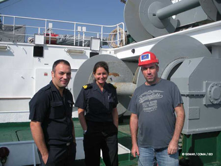 Antes de finalizar el relato de hoy quiero dedicar una especial mención con el reconocimiento de todos los componentes de esta expedición científica por la labor que esta realizando el informático de a bordo, Teodomiro Cardalda Lemiña, a quien todos llamamos familiarmente Teo. Batalla el muchacho con todo lo que se le ponga por delante. Resuelve lo más complicado y si no lo logra rápidamente permanece en su puesto renunciando al sueño o a la comida hasta que da con la tecla. Los requerimientos del IHM para cumplir con la norma hidrográfica le han dado mucho trabajo pero ha ganado la batalla y esto nos llena de satisfacción a todos. Verdaderamente la tripulación es excelente y el rendimiento extraordinario.