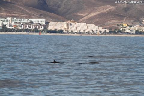 La luz es pésima para la fotoidentificación y además no conseguimos ponernos justo en paralelo pero finalmente se fotografían ambos individuos antes de sumergirse de nuevo.