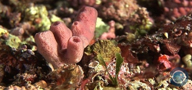 Esponja del género Haliclona. Los fondos de maërl del canal de Menorca presentan una gran diversidad de organismos filtradores © IEO