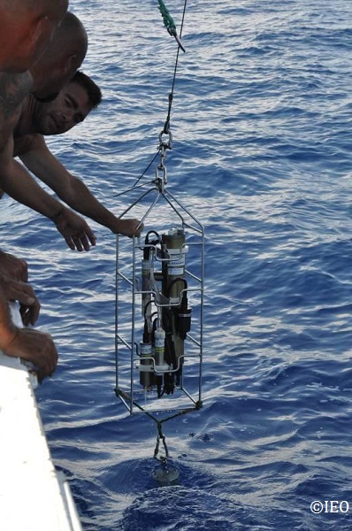 • Perfiles en profundidad de las variables temperatura, salinidad, oxígeno disuelto y fluorescencia.