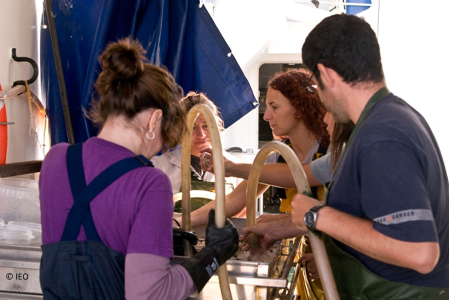 Trabajo a bordo: Pasando la muestra por la torre de tamices © IEO