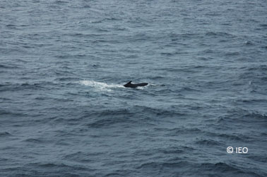 El día 8 batimos nuestro propio récord de profundidad, con muestras muy valiosas tomadas con GOC, bou y trineo suprabentónico a 1.800 m, en el mismo límite de la capacidad de trabajo de los aparejos. La tarde es amenizada por el avistamiento de un rorcual común, que se aproxima a menos de 200 m del “Miguel Oliver”. El procesado de las muestras nos lleva hasta más de la medianoche, pero el fruto nos maravilla a todos. Se trata de una zona casi al pie de la abrupta vertiente oriental del banco, con una gran riqueza faunística. Casi no quedan fuerzas para la habitual cerveza y charla en el salón de la tripulación.