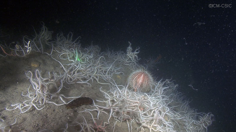 El descubrimiento de una población tan densa de ofiuras contribuye a completar el espectro de comunidades distintas que podemos encontrar en un lugar tan singular como el área del Cap de Creus. Durante las inmersiones, especialmente durante los primeros días, se observó que la carga de partículas en suspensión en el agua era tal que la cúpula frontal del submarino JAGO se cubría completamente dificultando la visión y el enfoque de las cámaras de video y fotográficas desde el interior de la cabina del submarino. Las condiciones climatológicas durante estos días de la campaña, con vientos fuertes de suroeste y variando a norte en algunos momentos, favorecían el trasporte y la suspensión de una concentración muy elevada de partículas en el agua. Tanto la abundancia de partículas como la sorprendente concentración de ofiuras son un ejemplo más de la elevada productividad de la zona lo que definitivamente, redunda en una elevada biodiversidad tanto de especies como de hábitats.