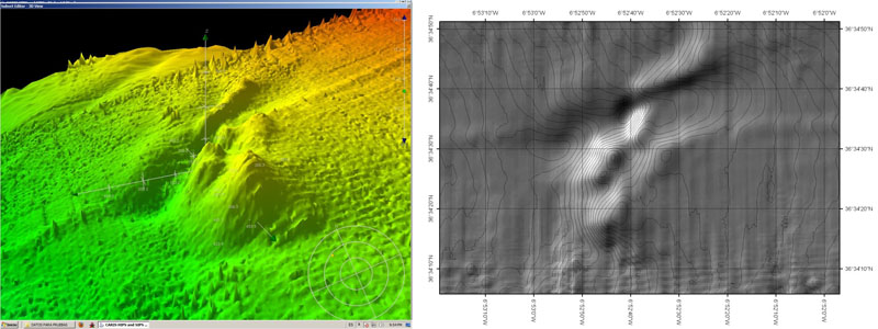 El más implicado en esta segunda estación es Juan Tomás Vázquez -Tomás para todos nosotros-, aunque le sigue a la zaga la Investigadora Titular y especialista en Sedimentología y Geoquímica, Dra. Nieves López. Mantienen una discusión con el Investigador Principal del Proyecto, Dr. Víctor Díaz-del-Río, quien defiende, desde la campaña que han realizado en junio del año pasado ocasión que tuvieron para muestrear por primera vez el diapiro, que la cumbre esta coronada por un volcán de fango, opinión apoyada en el aspecto que tenían los sedimentos extraídos en aquella campaña. Ahora tendremos la ocasión de comprobar si este experimentado y vetusto Investigador Senior, tenía o no tenía razón.