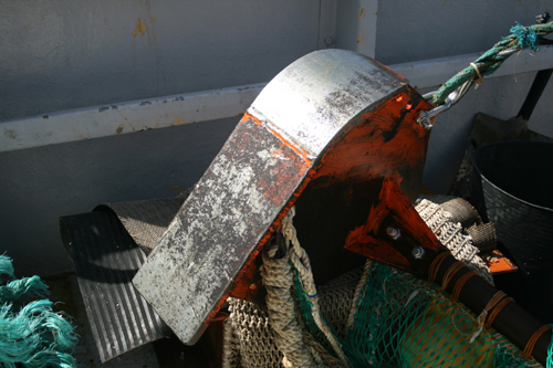 Después de dos días dedicados a explorar el reborde sur de la isla, ya es tiempo de explorar el reborde norte. Empezamos el día lanzando el bou de vara en la pendiente, a unos 150 metros. La red trae una gallineta de buen tamaño y muchos ejemplares de Parastichopus, una holoturia también bastante grande. Se fijan algunas como muestra y Sebastián nos enseña como se deben pelar para luego freír el músculo de su interior como un aperitivo poco habitual. En Cataluña las llaman espardeñas y se considera un plato de lujo.