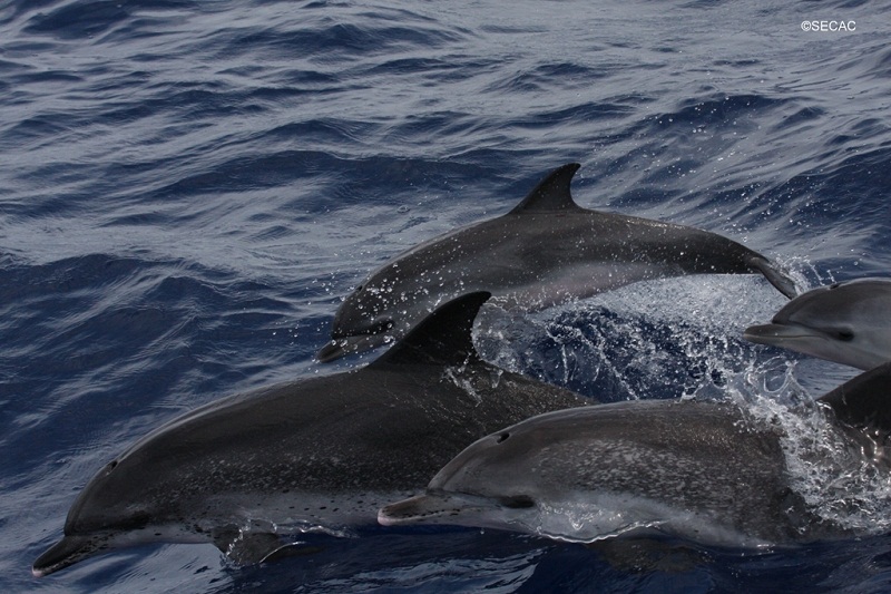 No ha sido un día con grandes avistamientos… el primero ha sido un zifio sin identificar (12.53 h) y mientras esperábamos su reaparición se han avistado unos delfines saltando, pero muy lejos. Tampoco se ha podido determinar la especie. Por la tarde, a las 15.13 h, se ha acercado al barco un grupo de delfines moteados (Stenella frontalis), formado por unos 40 individuos, adultos y juveniles, pero ninguna cría. Un par de horas después se han vuelto a ver varios cuerpos saltando entre las olas, de nuevo delfines que no se han podido identificar. Hasta última hora, ya sin luz no se ha vuelto a ver ningún cetáceo. A las 20.42 h se han visto en la proa del barco varios delfines moteados. Se ha estimado la presencia de 20 individuos pero la falta de luz ha impedido recoger toda la información pertinente.
